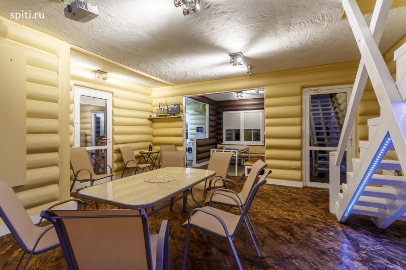 Лот 0125,Двухэтажная (3-х уровневая) вилла 320 м2 из рубленного бревна с 5-ю видами SPA. Банкеты 20 гостей, спальных мест 14 ПЕРВЫЙ ЭТАЖ: 1) веранда 2) гардероб 3) банкетный зал на 20 гостей 4) кальянная комната 5) оборудованная кухня 6) санузел с душевой комнатой 7) spa: — купель с джакузи и аэромассажем — фитобочка с аромотерапией 8) парная — русская баня на дровах 9) санузел с душевой 10) терасса с купелью на улице (без подогрева). ВТОРОЙ ЭТАЖ: 11) номер — двухспальная кровать, двухместный диван, челаут чердак, шкаф, столик с зеркалом, TV. 12) номер — двухспальная кровать, шкаф, трюмо, столик с зеркалом, TV. 13) номер (двухэтажный) — шкаф, кресло авторское, столик авторский с зеркалом, скульптура, банкетка, столик, кресло, TV, двухспальная кровать. 14) челаут холл, два двухместных дивана, кресло качалка, столик, зеркало, чердак с двумя огромными матрасами и мягкими подушками. 15) spa: — инфракрасная сауна из кедра — японская сухая баня футуро ИК 16) санузел с ванной 17) смотровая терасса Вилла spa hause’24 расположена в 17 км от МКАД по Ленинградскому или 19 км по Рогочевскому шоссе в д.»Владычино». Вокруг хвойный лес, р. Клязьма 400м, озеро Круглое 3 км., озеро Долгое 4 км. — территория 45 соток — парковка, гриль, площадки, газон — шатры, тент беседки (доп. оплата) — wi-fi на территории — спутниковое TV в номерах — xBoom 1000 ватт с караоке — видеопроектор — led подсветка д/у в номерах — постельное белье — посуда, принадлежности для душа -бассейн на улице,рядом с гриль зоной -купель из дикого камня на террасе Предоставляем услуги повара: — завтраки, блюда на гриле, в казане, авторская кухня, банкеты, возможно приготовление блюд из продуктов гостей. В 3 км от дома пляж озера Круглое. Заезд 14:00 выезд 12:00