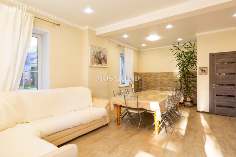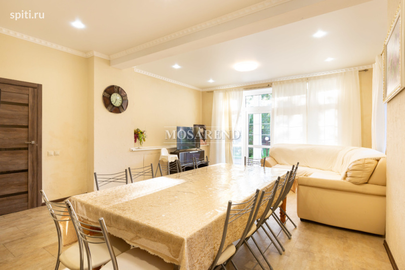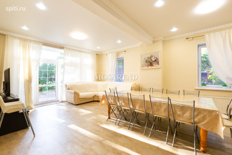 #23486 3 ОСНОВНЫХ ПРЕИМУЩЕСТВА: -много развлечений -чистота и порядок -оотношение цена/качество ИДЕАЛЬНО ДЛЯ: -дней рождения -корпоративных мероприятий -студенческих вечеринок Трёхэтажный коттедж площадью 180 м 2 с баней, сауной и бассейном расположен в деревне Алабушево Солнечногорского района, в 30 км от МКАД по Ленинградскому или Пятницкому шоссе. Дом подходит для комфортного размещения 12 гостей, максимально - 16. В доме: -1 этаж: бассейн 3х5 м с подогревом до +28-30 и противотоком, кухня, гостиная (раскладной диван - 4 спальных места), санузел с душевой кабиной, баня на дровах, сауна (электрическая) -2 этаж: два больших спортивных зала - в одном теннисный стол, во втором - бильярдный стол (2 раскладных дивана - 4 спальных места), спальная комната (одна двухместная кровать) -3 этаж: небольшая спальная комната (одна двухместная кровать), проходная комната (одна двуместная кровать и одноместный раскладной диван), большая спальная комната (одна двухместная кровать) На живописном участке 15 соток: -беседка на 12 гостей -детская площадка -мангальная зона -парковка на 5 автомобилей Стоимость указана для 12 гостей. Включено в стоимость: -постельное бельё -полотенца -базовая финишная уборка Дополнительные услуги: -баня на дровах 5 000 р./5-6 часов -сауна электрическая 4 000 р./5-6 часов -бассейн 3 000 р./заезд (бесплатно при аренде бани или сауны) -доплата за питомца 2 000 р. Бытовая техника в доме: -посудомоечная машина -духовой шкаф -плита -холодильник -чайник -микроволновая печь -утюг (по запросу) -фен (по запросу) -гладильная доска (по запросу) Страховой депозит: 10 000 р. Ограничения: -размещение с животными по согласованию -курить в доме нельзя -ограничения по шуму на территории Заезд/выезд: 13:00/16:00