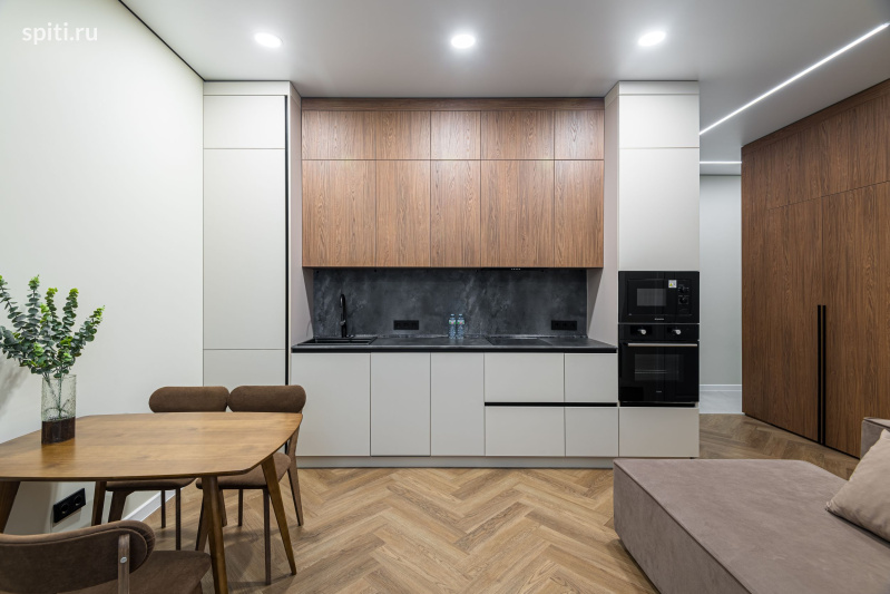 • В соседних квартирах возможны ремонтные работы: по будням с 10:00 до 17:00 может быть слышен шум Условия: • Уборка после выезда оплачивается отдельно - 3725р • Бесконтактное заселение 24/7 • Для регистрации необходим паспорт. • Заезд 15:00, выезд 11:00 (ранний заезд/поздний выезд по согласованию). • Цена указана за двоих. Доп. комплект белья - 2268₽. • Залог: 5000₽ (возврат на карту через 1-3 дня). • Оплата: 100% до заселения Апартаменты Flat Inn Б в ЖК Headliner рядом с Москва-Сити Современные апартаменты Flat Inn расположены в новом доме рядом с метро Шелепиха и деловым центром Москва-Сити. Просторная квартира площадью 41 м² выполнена в тёплых тонах и продумана для комфортного проживания. В апартаментах есть отдельная спальня с двуспальной кроватью, уютная гостиная с большим диваном и телевизором, а также полноценная кухня с варочной панелью, духовкой, микроволновкой и посудомоечной машиной. Современный санузел с душем, стиральная машина, фен и косметические наборы Flat Inn — всё для вашего удобства. Рядом расположены кафе, магазины и прогулочные зоны вдоль реки. До Москва-Сити — 5 минут пешком, до центра города — около 10 минут на метро. Бесконтактное заселение по индивидуальному коду. Служба поддержки Flat Inn работает 24/7.