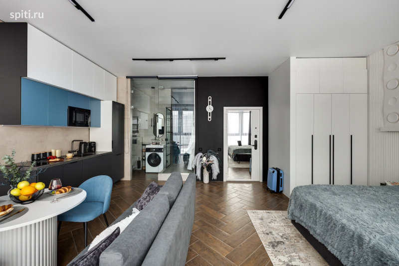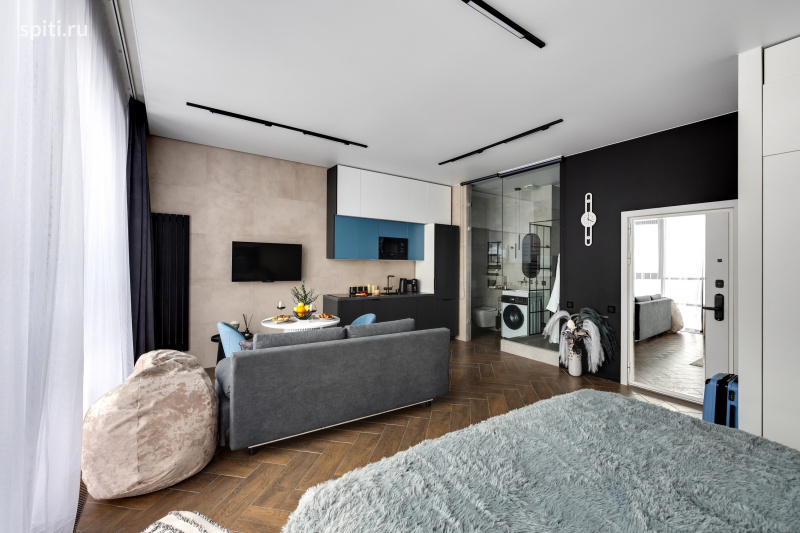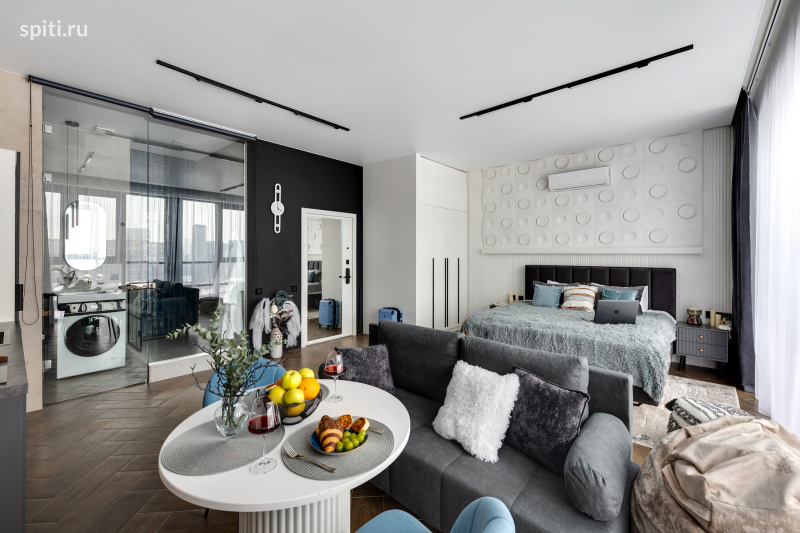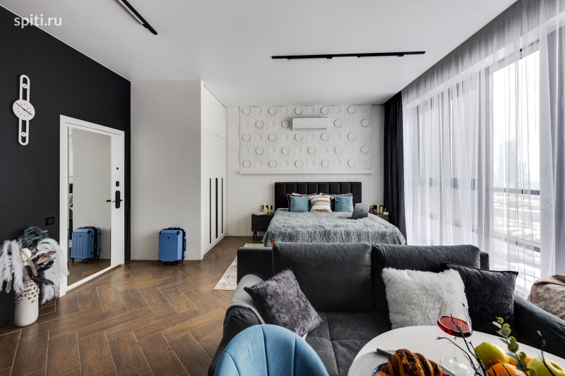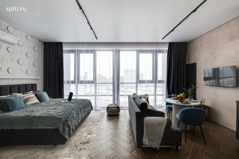 Добро пожаловать в вашу городскую гавань бизнес-класса — студию «Олимп» от HOME24. Здесь панорамные окна от пола до потолка открывают головокружительный вид на Москва-Сити, а каждая деталь интерьера, продуманная дизайнерами, создает атмосферу гармонии для тех, кто ценит качество во всем.