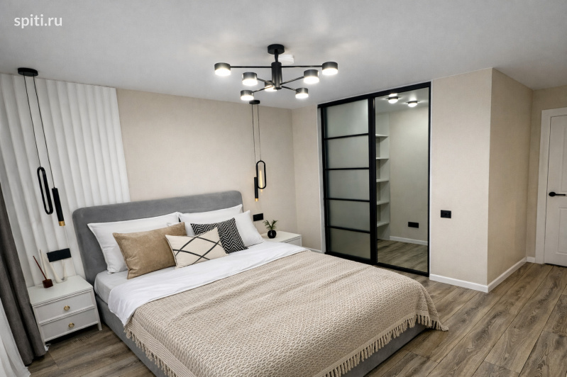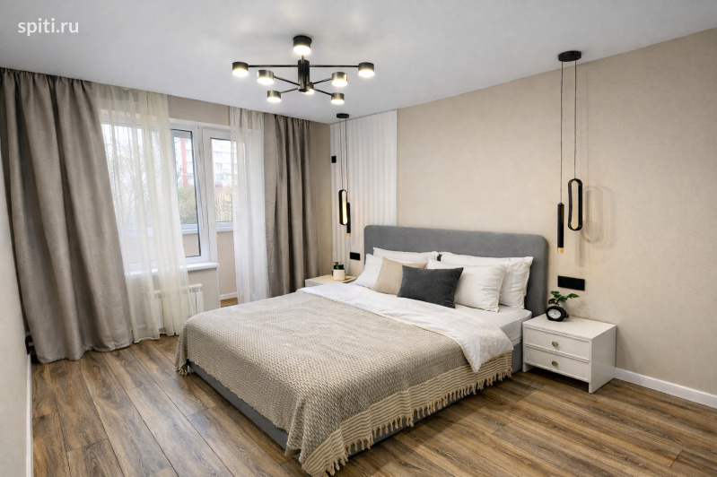 Современная 1-комнатная квартира — стиль, уют и комфорт для 4 гостей Светлая квартира в новом доме с продуманным интерьером в спокойных натуральных оттенках. Здесь всё выглядит аккуратно, современно и дорого: тёплый деревянный пол, мягкие текстуры, стильный свет, гармоничные цвета. Пространство создаёт ощущение порядка и уюта — идеально как для отдыха, так и для рабочей поездки. Интерьер выполнен в современном стиле: — светлые стены в тёплой гамме — натуральный деревянный пол — большая двуспальная кровать с мягким изголовьем — удобный двухспальный диван — аккуратный текстиль и декоративные подушки — стильная кухня с каменной столешницей — обеденная зона у окна — современная ванная комната с мраморной плиткой — отдельная гардеробная О квартире Полноценная однокомнатная квартира, рассчитанная на комфортное размещение до 4 гостей. В квартире: отдельная спальня с двуспальной кроватью, гостиная зона с раскладным двухспальным диваном, кухня, ванная комната и гардеробная. Преимущества квартиры — Двуспальная кровать — Двухспальный раскладной диван — Полноценная кухня: плита, духовка, холодильник — Обеденная зона — Стиральная машина — Современная ванная с ванной — Телевизор — Фен, утюг — Чистое постельное бельё и полотенца — Профессиональная уборка перед каждым заездом — Новый дом и аккуратный подъезд Кому подойдёт — Парам — Семьям с детьми — Друзьям (до 4 гостей) — Командировочным — Гостям Москвы Локация — Удобный выезд в разные районы города — Рядом магазины, аптеки, кафе — Остановки общественного транспорта в пешей доступности — Современный дом, чистый подъезд — Подходит как для деловых поездок, так и для отдыха Условия проживания — Заезд с 14:00, выезд до 12:00 — Бесконтактное заселение по коду — круглосуточно — Инструкция по заселению отправляется в , MAX и с 09:00 до 00:00 — Онлайн-оплата — Предоставляем отчётные документы — Залог 3000₽, возвращается в день выезда Правила проживания — Курение запрещено — Вечеринки запрещены — Заселение с 21 года БК8к3