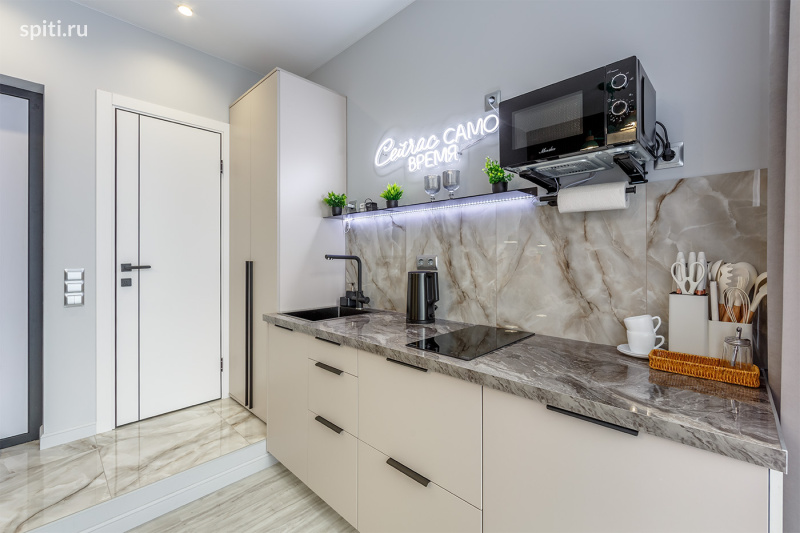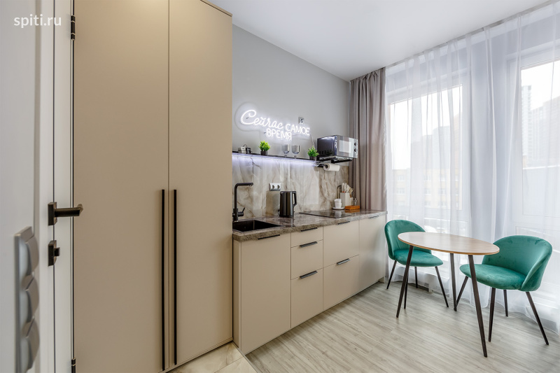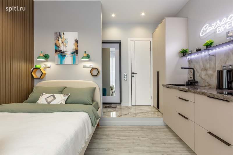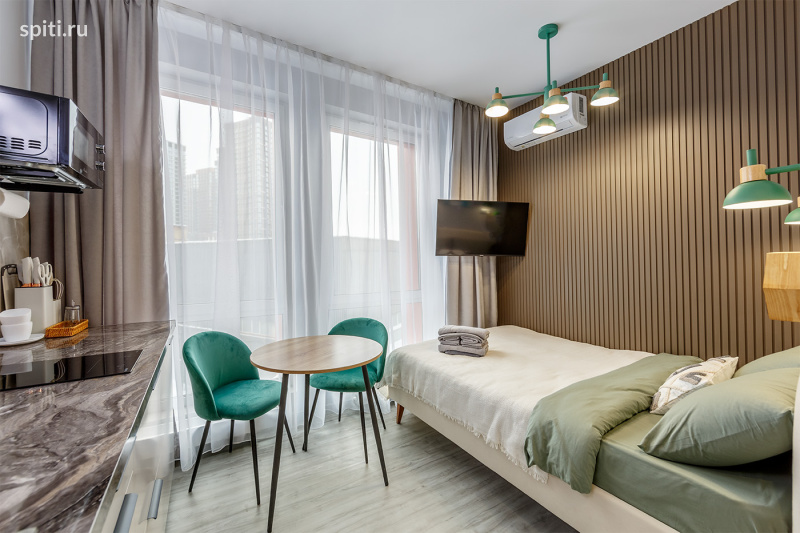 Дизайнерская студия с атмосферой отеля | Новоостаповская 20, Москва (4 этаж) | Посуточно Новая стильная студия в модных серо-бежевых оттенках с зелёными акцентами и уютным освещением. Здесь приятно находиться — всё чистое, свежее и продумано, как в хорошем отеле. Преимущества: — Новый ремонт, мебель и техника — Премиальная чистота — Быстрый Wi-Fi и Smart TV — Бесконтактный заезд 24/7 (инструкция в / MAX /) В квартире вас ждёт: — Большая двуспальная кровать с удобным матрасом — Чистое постельное бельё и полотенца — Кондиционер — Smart TV + быстрый Wi-Fi — Обеденная зона (круглый стол и стильные стулья) — Полностью оборудованная кухня: варочная панель, микроволновка, холодильник, чайник, посуда, чай и кофе — Душевая кабина, стиральная машина, зеркало — Шкаф для хранения — Уютный свет и дизайнерские детали Рядом: магазины, аптеки, кафе, кофейни, транспорт и удобный выезд по городу. Идеально подойдёт: для командировок, пар, туристов, поездок на мероприятия или проживания на несколько дней/недель. Важно: — Не сдаётся для мероприятий — Курение запрещено — Можно с детьми Условия: — Заезд с 15:00, выезд до 12:00 — Заселение по коду круглосуточно — Инструкция в / MAX / с 09:00 до 00:00 — Документы онлайн, оплата онлайн — Отчётные документы — Залог 2000 ₽ (возвращается в день выезда) Поздний выезд: до 15:00 — 50%, после 15:00 — 100% Нажимайте «Забронировать» — хорошие даты разбирают быстро! Студия 1 Green