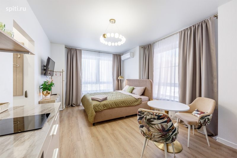 **Дизайнерская студия с атмосферой отеля** Стильная и уютная студия в современном доме — отличный вариант для комфортной поездки в Москву. Интерьер выполнен в спокойных серо-бежевых тонах с зелёными акцентами и мягким светом — атмосфера как в хорошем отеле. Окна выходят во двор, поэтому в квартире тихо и спокойно, особенно вечером — идеально для отдыха после дороги или насыщенного дня. — Новый ремонт, мебель и техника — Премиальная чистота — Быстрый Wi-Fi — Бесконтактный заезд 24/7 (инструкция в / MAX /) **Размещение до 4 гостей (2+2)** — Двуспальная кровать с удобным матрасом — Диван (дополнительное спальное место) — Чистое постельное бельё и полотенца — Кондиционер — Smart TV — Обеденная зона (стол + стильные кресла) — Места хранения — Красивое освещение и дизайнерские детали **Кухня полностью оборудована** — Варочная панель, холодильник, СВЧ, чайник — Посуда для готовки и сервировки — Чай и кофе для гостей **Ванная комната** — Душевая зона, современная сантехника — Зеркало, фен, средства гигиены Важно: стиральная машина находится в общей зоне на 3 студии. **Локация** Амурская улица — комфортный район Москвы с развитой инфраструктурой. Рядом магазины, аптеки, кафе, пункты выдачи, бытовые услуги. Удобные развязки и быстрый выезд на основные магистрали. Во дворе есть бесплатная стихийная парковка. **Условия проживания** — Заезд с 15:00, выезд до 12:00 — Заселение по коду — Инструкция с 09:00 до 00:00 — Документы онлайн обязательны — Оплата онлайн, отчётные документы — Залог 3000 ₽ (возвращается в день выезда) Поздний выезд: до 15:00 — 50%, после 15:00 — 100% ⚠️ Не сдаётся для мероприятий, курение запрещено, можно с детьми. Нажимайте «Забронировать» — хорошие даты разбирают быстро! **Амурская студия 87/3**